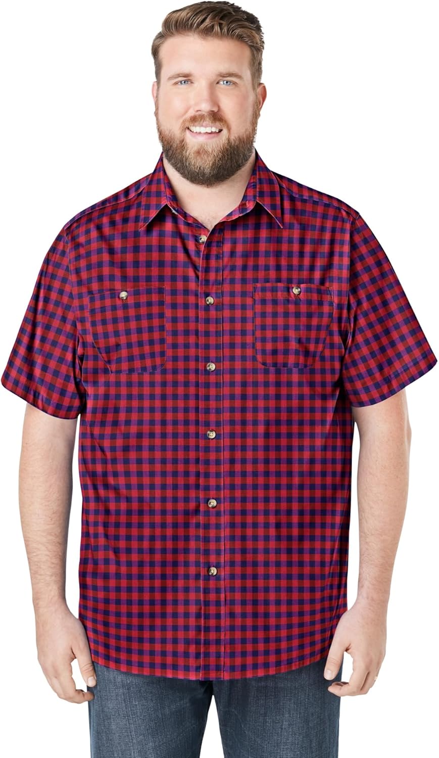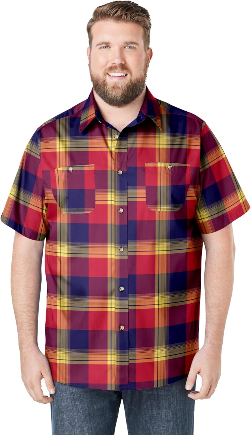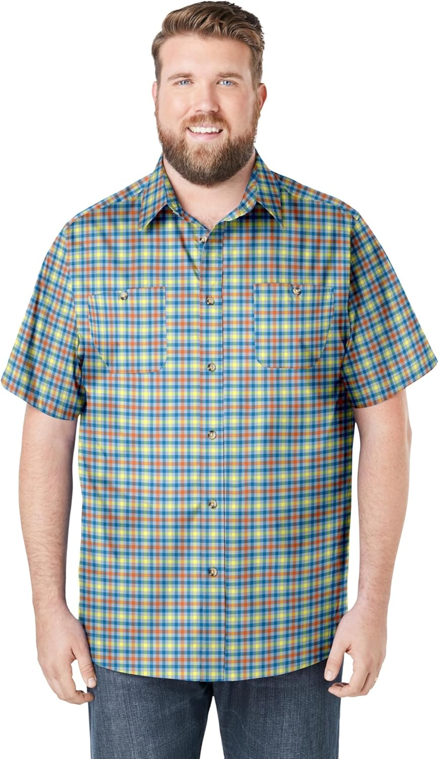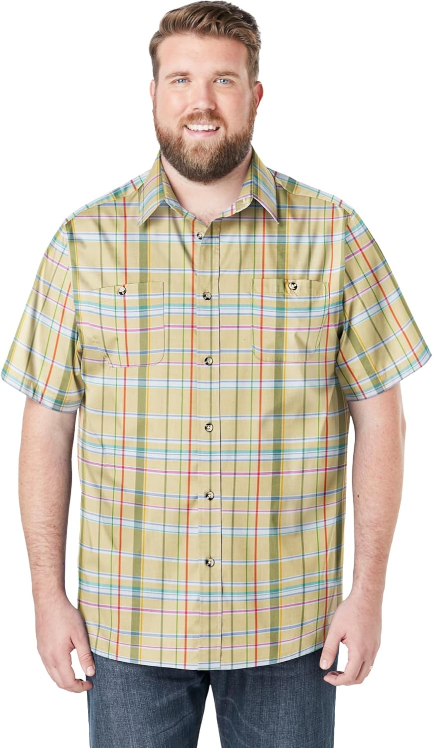 Our best-selling Wrinkle-Resistant Short Sleeve Button Down, Printed is great for work and casual nights out. With a pointed collar and two button-through chest pockets, this shirt is sure to offer a casual yet classic look. And the cotton-blend fabric won't lose its shape. Relaxed fitbr>Easy-care fabricbr>Short sleevesbr>Two button-through chest pocketsbr>Big abt. 34"; Tall abt. 36"br>Woven cotton/polyesterbr>Machine washbr>Imported